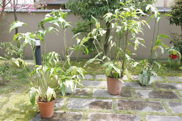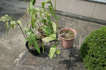 こいつらは中位の鉢を合わせて植えたもの。いま一番育ちが良さそう。シュートも