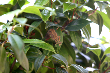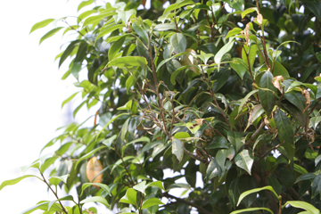 少し周りを見渡してみると、あれれ、お茶の気に小さめのやつが葉っぱにたくさん