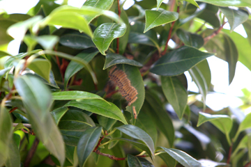 よぉ〜く耳を澄ますと、やっぱし葉っぱをかじる音と、ウンコが落ちて葉っぱに当る