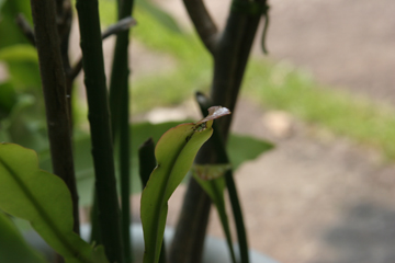 ちょっとずつ月下美人の新芽が食われているように思っていたら、どうせお前だろう、