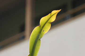 ちょっと月下美人の葉っぱの惨状も確認してみましょう。穴開いてます。