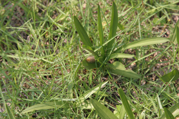 ふとネジ花をみると、あれれ何だまだ居たの。ネジ花の葉っぱの奥に中くらいのが。