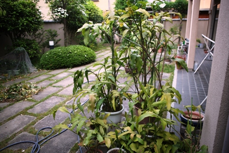 葉っぱについてる力がなくなってポトポト落ちてくるのね。ざま〜みろ。
