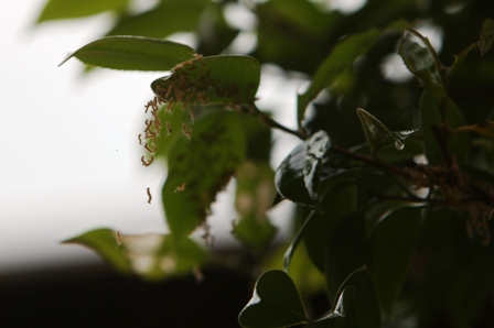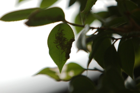 あ〜、葉っぱの根元の方にもいやがった。こやって移動してるのね。