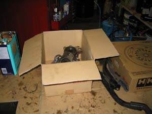 左がハブ関連、右がクラッチの箱。間にあるのは下回りのなんとかバーです。以前にワタスが