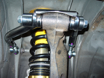 リアアッパーアーム。後の青いのは以前から付けているクスコ製。前側はナギサオート製。