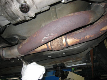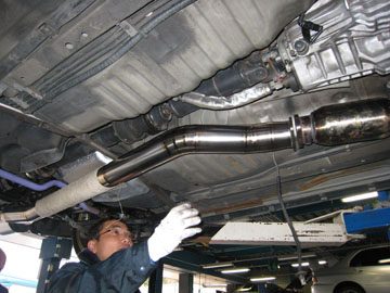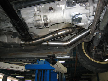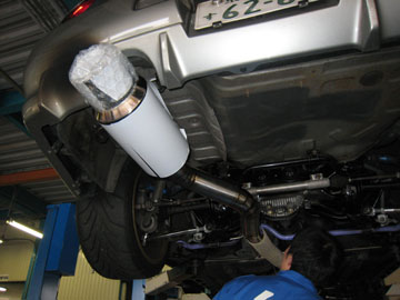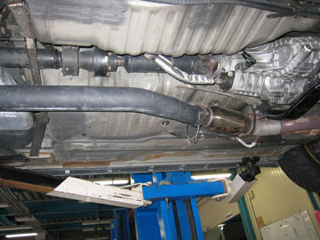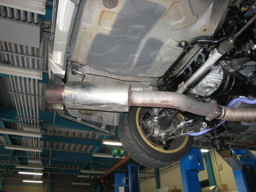 こりは中間パイプからなんちゃって触媒まで。中間パイプは、リアメンバーをリジッドに
