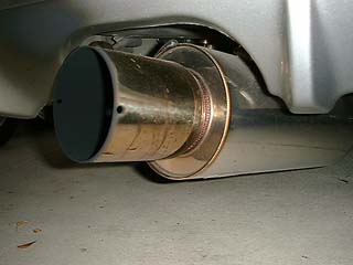 昔のハイパーマフラーでして、標準車用のストレートのヤツ。Vスペック用は ディフューザーがあるので曲がっている。インナーサイレンサー用のネジ穴が 開いてます。