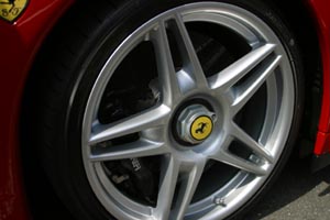タイヤは19インチ。ホイルは変形5スポーク。マグネシウムなんだろうなあ。