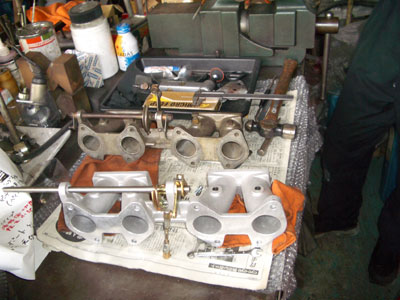 インテイク、下がエギゾーストです。例によって後方には整然と整理されたパーツが