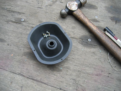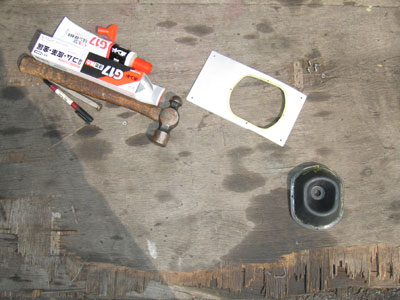ショットピーニング後のパネルとブーツをG17でくっ付けています、はい。なんで金槌か