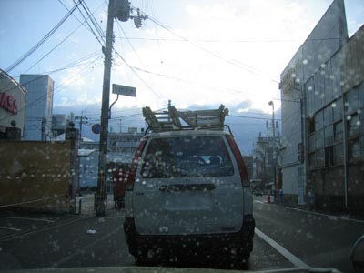 で、朝7時出発のつもりが30分遅れの7時半。例によって雪模様。京都白梅町では、