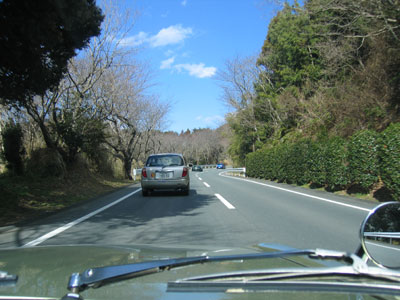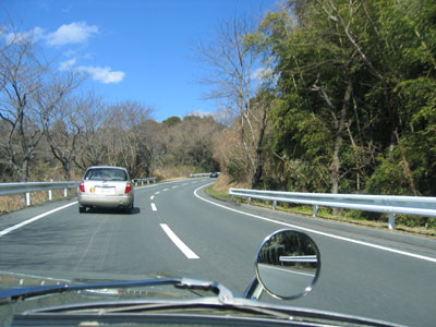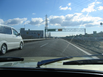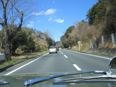直線を堂々と追い越し車線走行中(笑)。スピードメーターが2割り増しくらいなので、
