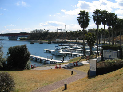 マリーナ遠景。じくしゃん、子供とはしゃぐはしゃぐ。子煩悩なお父さんだ。