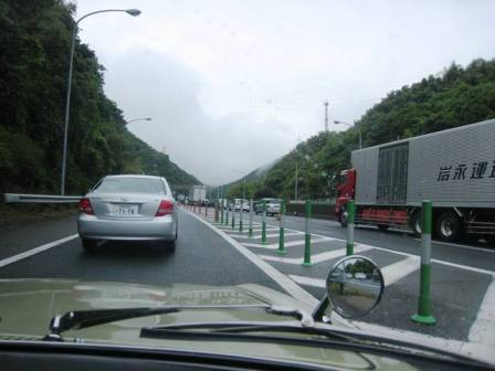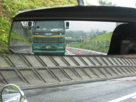 入ってからず〜っと1車線規制。あれれ、こらこら、トラックそんなに近づくんじゃない!