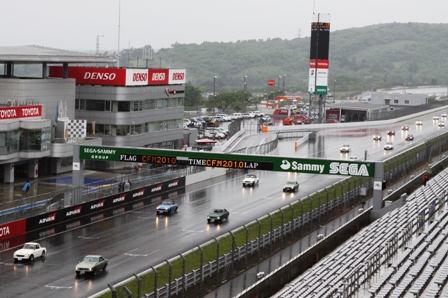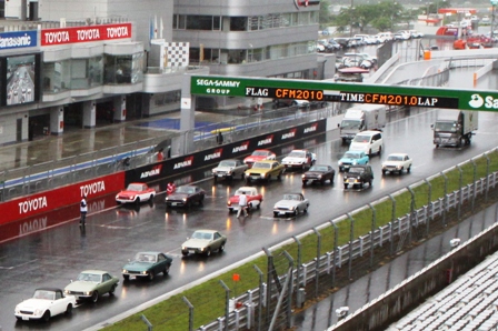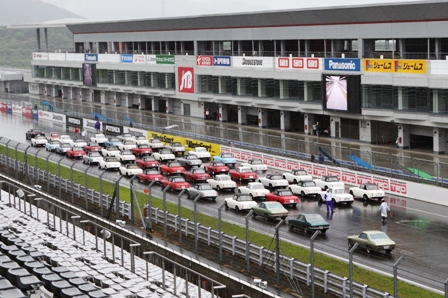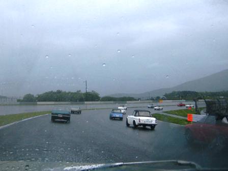 いろいろ演目は予定して頂いているんだけれど、雨だしゲンナリ。スタンドでFJ観戦中。