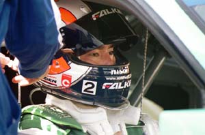 最終コーナーで快走する田中師匠。このファルケンカラー の方が合ってますねえ、やっぱ。
