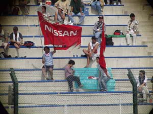 おや〜、応援団がいます。ニッサン頑張れ。ちょっとしけてますが(笑)。
