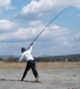 例年ならば冬前のぽかぽか陽気となるところであるが,前日に木枯し1号が到来し,北陸方面からの参加者にあっては途中,雪道を通り会場に駆けつけるなど,天候は一足早い冬モードとなった。コート左から右へと乾いた強めの寒風が吹き抜け,時にはセンタ近くに投げたシンカーをコート外までも押し出すような状況は,通常の練習では投げることをあきらめてしまうような厳しいものである。 このような状況にあっても,競技においては200mを遙かに超える投てきや,オーバーキャストの応酬,きわどい勝負など,ホットな戦いが繰り広げられた。わずか5投であってもキャスティングは奥が深い。リール・ロッドの調整,体調,風読み,メンタル強化,かけひき,etc.。 今年を締めくくるこの大会は結果がすべてである。強い者が勝つのではなく,勝った者を強いと認める大会なのである。しかしながら,今年のような厳しい状況ならば不運はあってもラッキーは少ない。となれば,やはり強い人が勝ったといっても良いのかも知れない。 なお,競技は3班編制で進行し,第1グループ:第1・2種目,第2グループ:第3・4種目,第3グループ:第5・6種目により行われた。 |