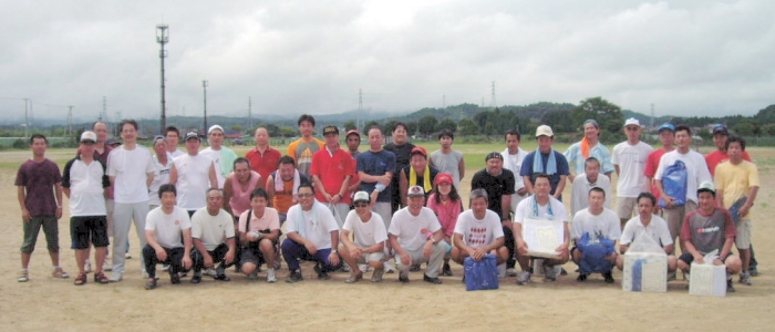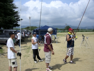 | 投てき順番待ち | 夏の大会の〆はスイカ。マリンサーフさんのご提供です。 |
