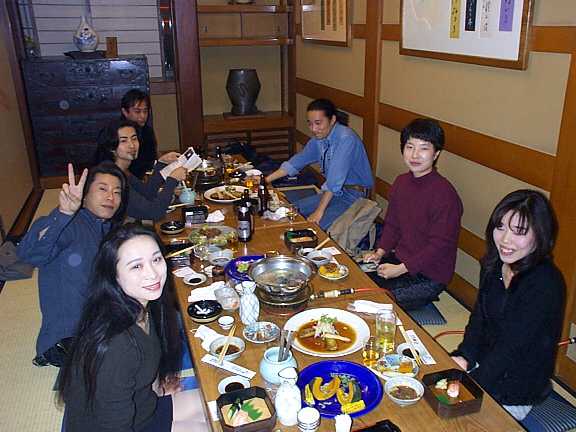 東京から参加のsam さんから、少し早めに大阪入りされるという連絡を受けており、先に新大阪駅で落ち合うことにしました。 新大阪駅では迷うこともなく無事会うことができ、あいさつもそこそこに、地下鉄に乗ってオフ会待ち合わせの梅田方面へと向かいます。 一息つくため適当な喫茶店に入りました。sam さんとは初対面だったんですが、すでにBBSやメールでのやりとりはあったので、お互いすぐに打ち解けて、早速音楽の話で盛り上がりました。 なんと、sam さんは伝説のグランド・ファンク後楽園ライヴ(1971年)を体験されてたんですね〜。雑誌の記事やレコードのライナーなどで何度となく紹介され、すごいライヴだったということは知っていたんですが、実際にそれを体験された方から話を聞くことが出来るとは思ってもいませんでした。 その日は、バンドが登場すると同時に激しい雷雨となったそうですが、そんなことお構いなしに演奏が続けられたため、ドラムを叩くたびに雨しぶきが跳ね上がっていたとか、アンプから火花が出ていた(あ〜恐ぁ)とか、とても今では考えられない話です。 ほかにレッド・ツェッペリン、やフリー、箱根でのピンク・フロイドのコンサートの話も興味深く聞かせてもらいました。 店を出た後、近くの楽器屋さんを覗いたりしているうちに、待ち合わせの6時近くになり、集合場所へと向かいました。 しばらく待っていると「お父さん」が登場。今回は3人だけなので、携帯電話のお世話になることもなく全員が揃いました。 sam さんにはせっかく大阪まで来られたのだから、お好み焼きを食べようということになりました。適当な店を探して歩いていると、たこ焼き屋が近くにあるのを思い出し、そこへ行くことにしました。 たこ焼き屋といっても、そこは、お好み焼きのように自分で焼いて食べるというお店なのです。 たこ焼きをひっくり返すキリ(って云うのかな?)を片手に、音楽の話から始まって、関西弁の話、関東と関西での習慣の違いなどについての話で盛り上がりました。「アホ」と「バカ」の違い、「エスカレーターに乗るときの立つ位置」の違い、などですね。この手の話題は結構おもしろいです。関西弁の「しばく」っていうのは標準語では何と言うのでしょう… 他にも音楽の話、ジミ話もあったんですが、すみません、あまり覚えてません。左利きの話はしたような。 翌日はちょうど"Band of ShigeoRollover"のライヴがある日なので、sam さんには「せっかくだから、ぜひ一泊して次の日いっしょに行きましょう」と勧めたのですが、今日中に東京まで帰られるということだったので、新幹線の最終に間に合うよう、9時頃にはお店を出ました。 sam さんを大阪駅まで見送り、短い時間でしたが、楽しい時間を過ごさせていただきました。 翌日は僕も "Band Of Shigeo Rollover" のライヴに行くことにしていたので、「それなら家へ泊まりませんか」という「お父さん」の言葉に甘えてしまって、この日は結局神戸の「お父さん」のお家に泊めてもらいました。(4月1日の Band Of Shigeo Rolloverライヴの感想文はこちらです) sam さんには遠いところから参加していただき、ありがとうございました。それに、オフ会だけのために大阪まで来てもらったなんて、なんと言っていいやら、本当に嬉しい限りです。お土産もいただき、本当に感謝しております。 今回は日帰りということで残念でしたが、次の機会にはもっとゆっくりお話が出来たら良いと思ってます。 2001.4.6記
