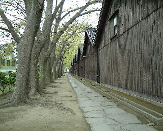 | 湯の浜温泉から30分ほど北上すると酒田市へ。写真はケヤキ並木に囲まれた山居倉庫。明治時代に作られた米穀の倉庫だが、現在でも使用されている。 | 酒田の大商人本間家の旧本邸宅。本間家の三代目当主が藩主の酒井家のために幕府の巡検使宿舎として建造。そのため商人の家なのに武家屋敷の造り。 |