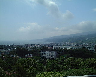 | 城の中は北条氏や小田原城に関する資料館になっている。最上階は展望台になっていて、相模湾、伊豆半島がよく見える。写真は最上階から見える伊豆半島。