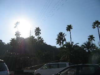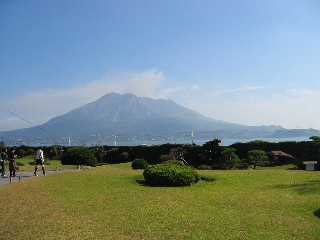 | その後国道226号を南下して指宿に向かった。11月でも夏のような日差し。街路樹も南国を思わせる。 | 指宿の「砂楽」という砂蒸し風呂の銭湯(?)へ。砂の中に埋まって入る不思議な温泉。10分が目安といわれたところ20分近く入っていたらおしりがヒリヒリしてしまった。 |