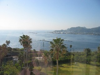 | 2日目は指宿温泉にある指宿フェニックスホテルに泊まった。部屋の窓からは、山川港や大隈半島が見えてとてもよい眺めだった。 | 3日目は、国道226号線を通って知覧町へ向かった。途中開聞岳がとても美しく見えた。 |