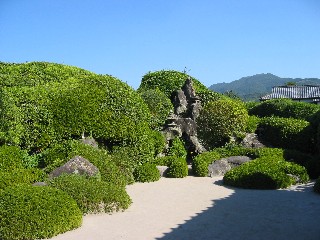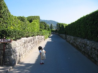 | 知覧町の武家屋敷群へ。江戸時代の武家集落の景観が保存されている。石垣や庭木の緑が南国という感じがして、本州で見る武家屋敷とは雰囲気が違う感じがした。 | いくつかある料金所のどこかで入園料を払えば、各家の庭園を見ることができる。全部で7軒あるが、正直途中で飽きてくる。 |