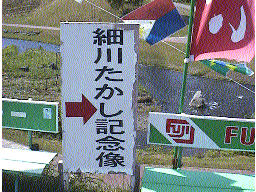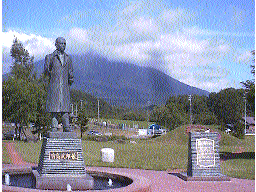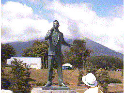 | 99年8月札幌の実家に帰省した際に家族でスキー場で有名なニセコ方面を旅行した。まずは京極町の「ふきだし公園」へ。蝦夷富士と呼ばれる羊蹄山の雪解け水による名水で有名なところ。 | 次に車で30分程の真狩村へ。ここは演歌歌手細川たかしのふるさと。地元の英雄細川たかし記念像がある。 |