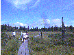 | ニセコのリゾートホテルで一泊し、翌日近くにある「神仙沼」へ。駐車場から沼までまさに北海道という感じの大自然の中を1.5Km程歩く。 | 沼も期待通りの透明な水をたたえており美しい。1.5Km歩く価値あり。 |