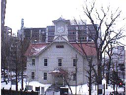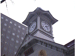 | 私の実家は札幌。お正月休みに帰省したので札幌市内の観光スポットを撮影してまわった。当日気温は−4.9℃。よくこんな寒いところに住んでいたものだ。 | 札幌といえば時計台。時計台は明治初期に旧札幌農学校(北大の前進)の演武場として建てられた。 |