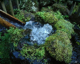 | 母と妻は「ほたて定食」。味、ボリュームとも満点。 | 写真は京極町にある「ふきだし公園」。羊蹄山の雪解け水が噴出していて自由に汲んだり、飲んだりできる。 |
