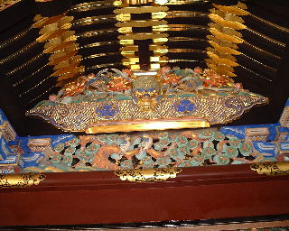 | 日光東照宮でみたような豪華な飾り物がたくさんある。隣接する宝物館では家康や歴代徳川将軍のに関する展示品が公開されている。