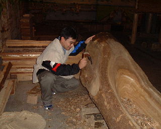 | 最後に登呂遺跡へ。弥生時代の稲作の様子を伝える貴重な遺跡。隣接する博物館では弥生時代生活を体験してみることが出来る。私も丸太舟を彫ってみた。