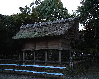 | 遺跡はいまでも発掘作業が行われたいた。また発掘された遺跡のあとには当時の建物が再現されている。写真は高床式倉庫の復元。