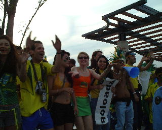 | 後ろの席に座っていたブラジル人のサポーター。得点が入るごとに私を振り向かせ雄叫びを上げながら握手を求めてきた。ブラジル人は熱い。