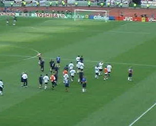 | ベッカムがコーナーキックを蹴る瞬間。この日はベッカムの動きはイマイチだった。試合はオーウェンのゴールでイングランドが先制するもリバウド、ロナウジーニョのゴールでブラジルの逆転勝ち。