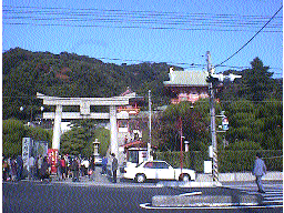| 2日目は下関に宿泊。前日は奮発してふぐフルコースを食った。写真は赤間神社。後ろを振り返れば源平の合戦で有名な壇の浦である。この神社は安徳天皇を祭っており、耳なし芳一の像もある。 | 日清戦争講和記念館。奥の建物で講和条約が締結され、手前の建物が今は記念館となっている。 |