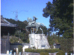 | 小倉城。細川氏が築城し、小笠原氏の居城として幕末を迎えた。最上階が南蛮風の作りになっている。 | 最後に下関にもどり長府の功山寺へ。写真は高杉晋作の像。ここで高杉晋作は騎兵隊を挙兵した。 |