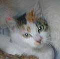 鼻黒三毛ちゃん(メス) | ☆町2丁目 川沿いのエサ場周辺で暮らす猫。猫好きなお宅の軒や物置の上で日向ぼっこしたり、1匹でいることが多い。 |