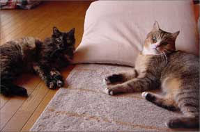 グースケくん1匹の時はとても静かな我が家でしたが、りんちゃんが来てからにぎやかな騒がしい日々が続いております(笑)毎朝6時ピッタリにりんちゃんは甲高い声で「ぁあ〜ぁ!」と鳴いて起してくれます。(にゃぁーとは鳴かないのです。。) あと1ヶ月ちょいか2ヶ月くらいで1歳になります。 どーでしょう…少しはゴージャスなサビ猫ちゃんになったでしょうか・・・? |