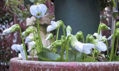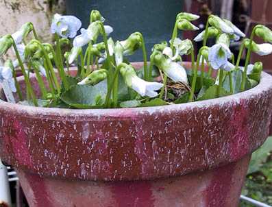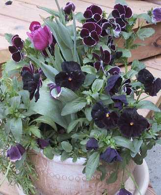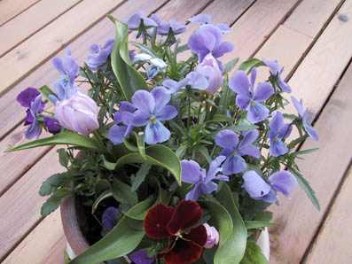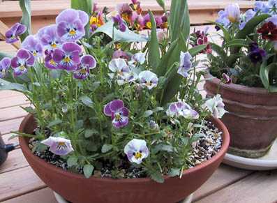 テーブルの上のビオラやパンジーも色鮮やかです。