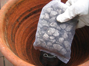鉢がえのときなど、ネットにつめておくと ばらばらにならず便利ですね。 |