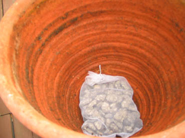 | 僕はチューリップの球根が入っていた ナイロンのネットを利用してみました。 |