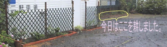 それはそれは硬い駐車場の路面、隣家との境にボーダー花壇を作っています。人呼んで