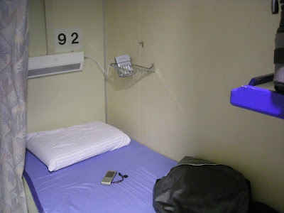 太陽も沈みかけており,なかなか良い景色だ。 デッキから部屋に戻る。今回の旅では雑魚寝の部屋は敬遠して,寝台のあるカジュアルルームを利用。コンセントがあるのはいいね。 部屋の中で,北海道でのツーリングルートを検討。未だに完全なルート設定ができていなかったのだ。 22時消灯。