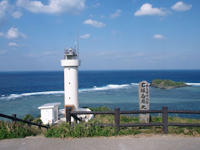 平久保崎 さらに北上し最北端平久保崎へ。 岩場の丘、珊瑚礁の海、そして灯台。270度の眺望。右手に砂浜、左手に牧場。 やや曇っていて、晴れてはすぐ曇る。徐々に雲が増えていく。今日はダメかなと思ったが,後でパラグライダーに乗るために引き返してきたら快晴で,とても綺麗な海が見えた。