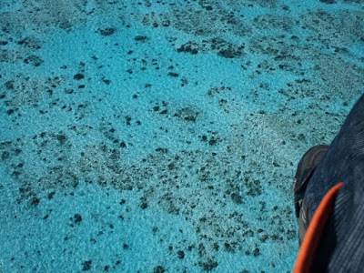 昨日飛行機の上から眺めていた珊瑚礁、その上をこんな低空でゆっくり眺めることができるなんて、本当に感動する。しかも今日は青空が広がっている。おかげで海も最高に綺麗だ。